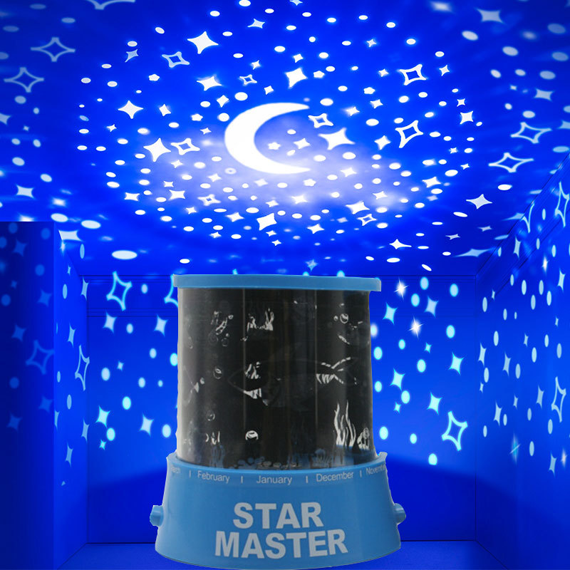 Q10 lampu proyektor bayi, proyeksi cahaya biru mencerahkan langit berbintang nyaman berputar musik