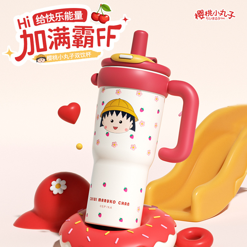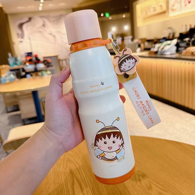 Cherry Maruko termos olahraga, botol minum anak-anak terlihat tinggi, lucu portabel, cangkir air khusus untuk sekolah