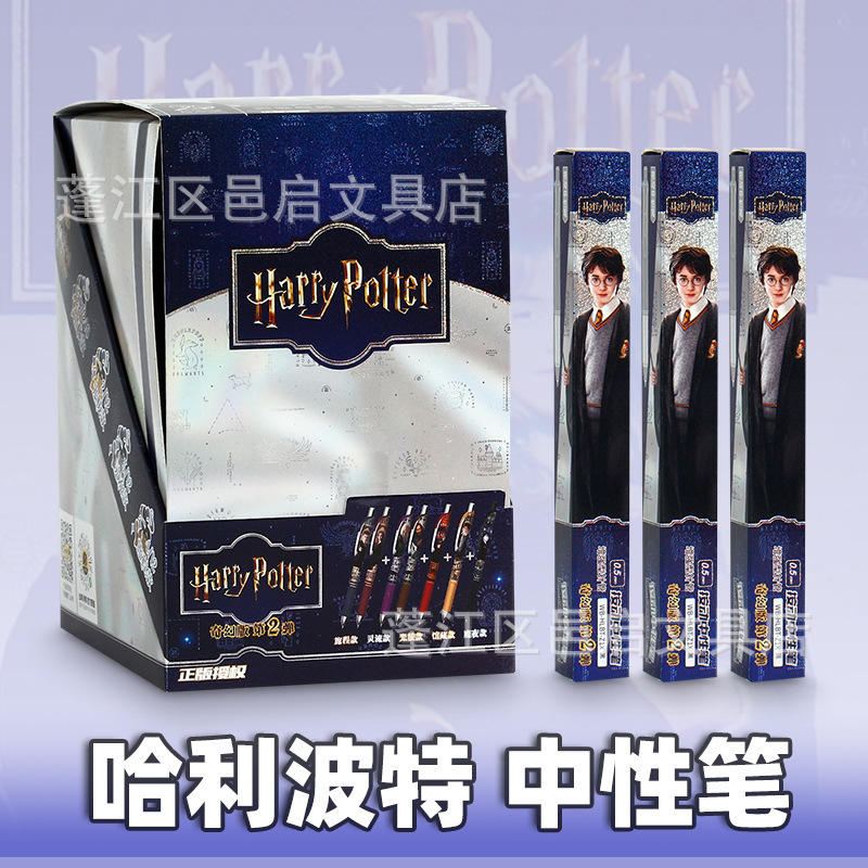 Pulpen gel Harry Potter blind box edisi fantasi seri 2 merchandise resmi pulpen hitam yang dapat ditarik