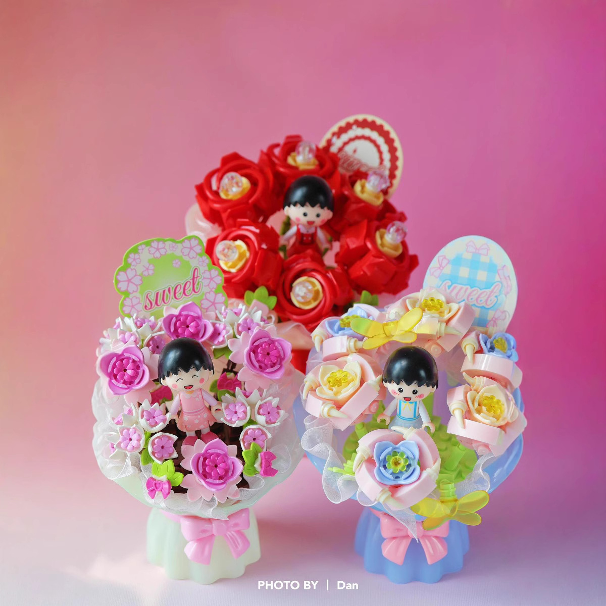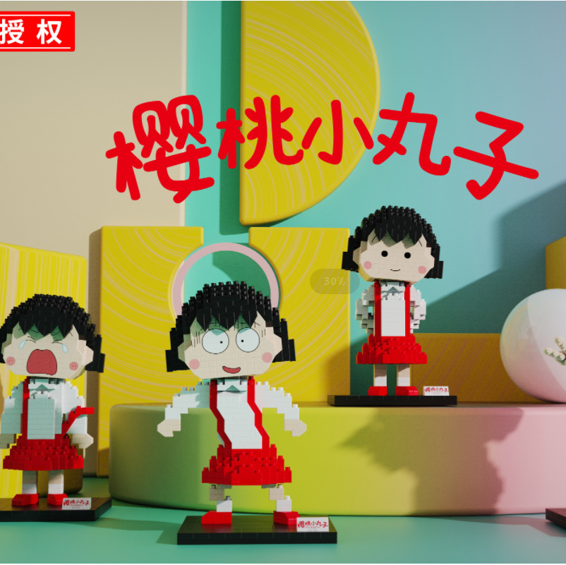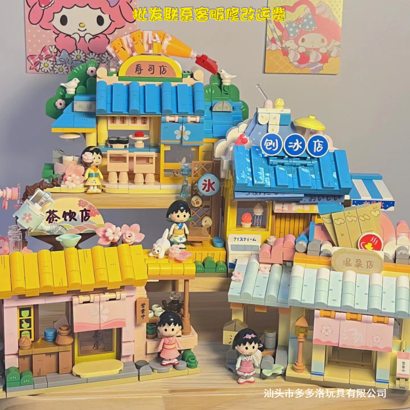 Cherry Maruko blok bangunan tidak diketahui perifer blok bangunan tampilan jalan Jepang blok bangunan partikel kecil dirakit mainan anak-anak hadiah anak perempuan