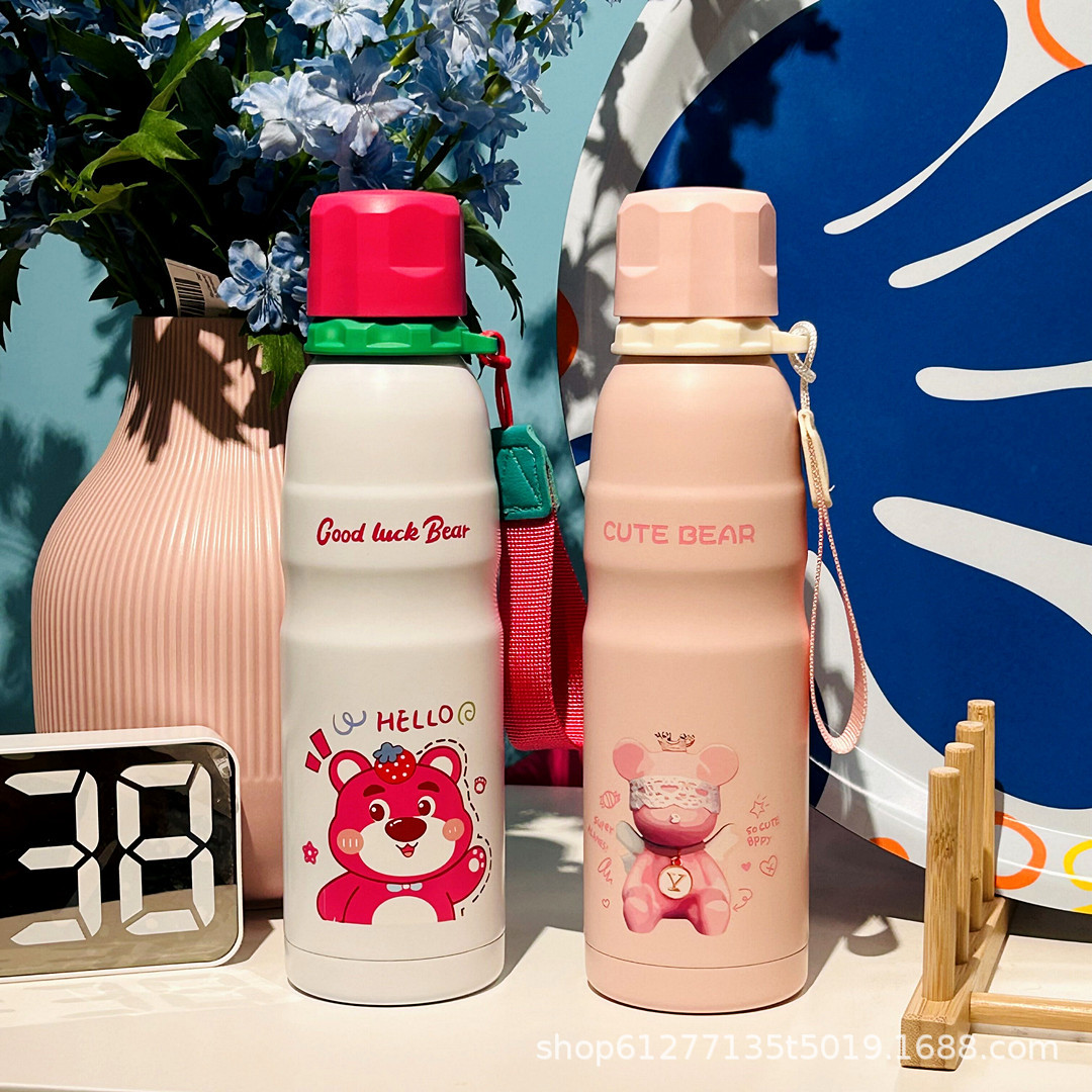 Gelas termos anak-anak, ketel olahraga kartun, sedotan portabel dua kali minum, portabel, kapasitas besar, baru, 316