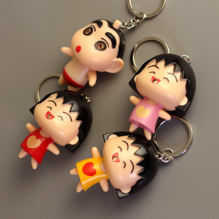 Gantungan Kunci boneka Maruko Cherry gadis, Gantungan Kunci lampu LED kecil suara baru liontin kreatif hadiah aktivitas perempuan