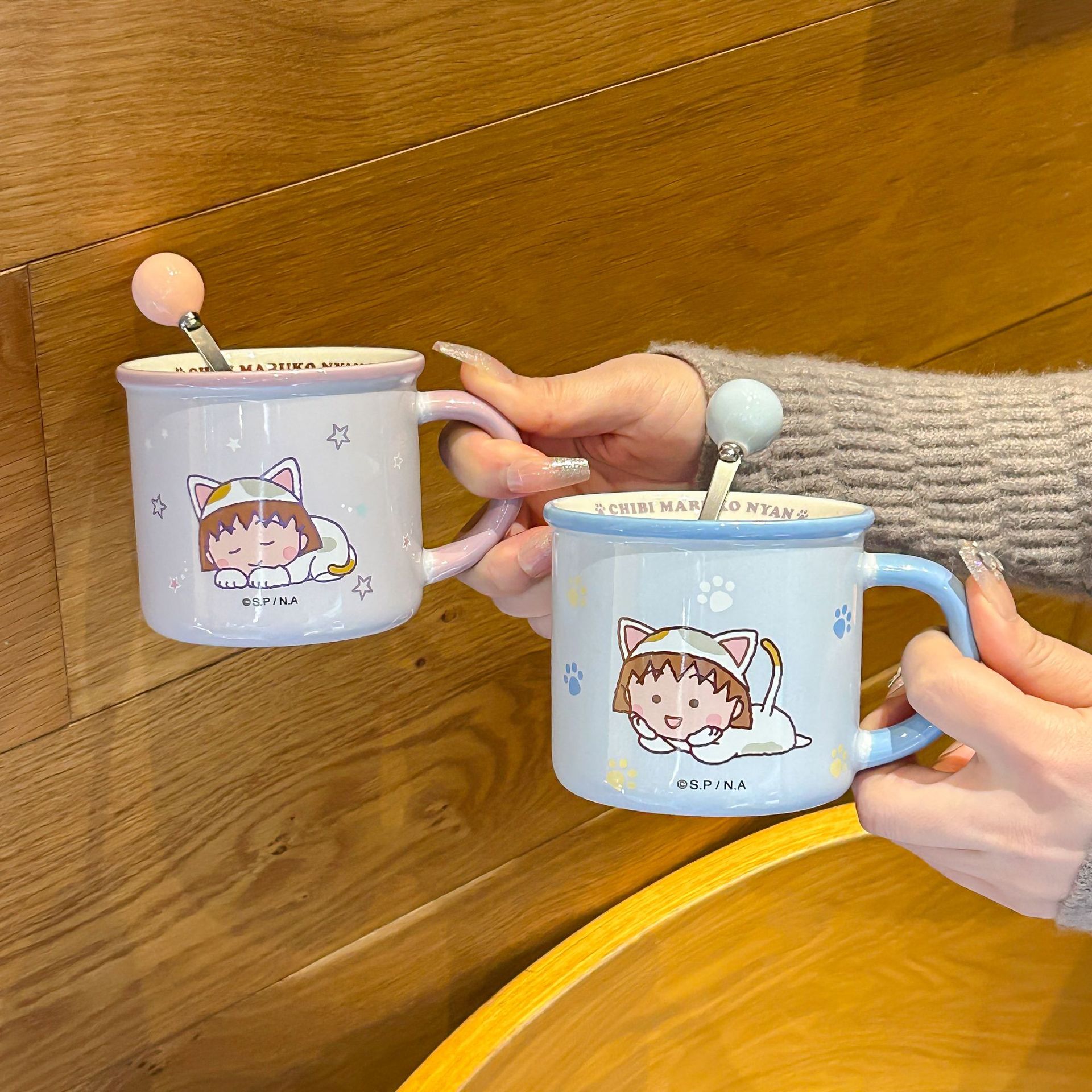 樱桃小丸子支架杯高颜值马克杯个性陶瓷杯可爱情侣杯办公室喝水杯