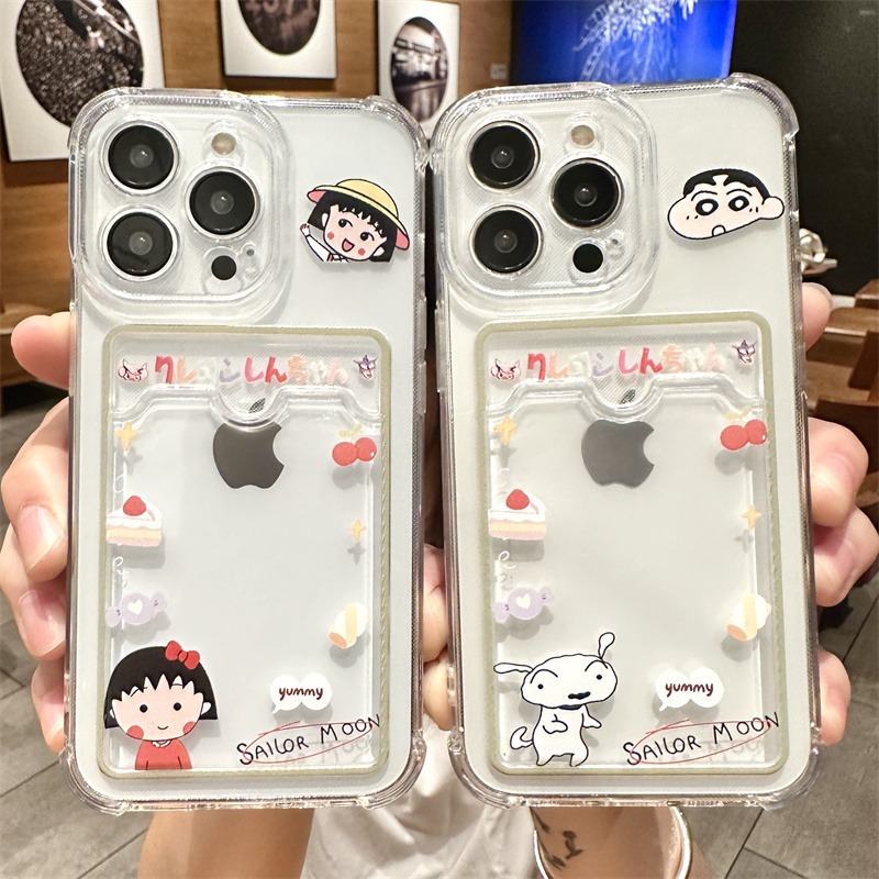 Berlaku untuk Apple 15 casing ponsel iPhone13 casing pelindung 14pro baru 12 crayon Xiaoxin 11 pasangan x tempat kartu