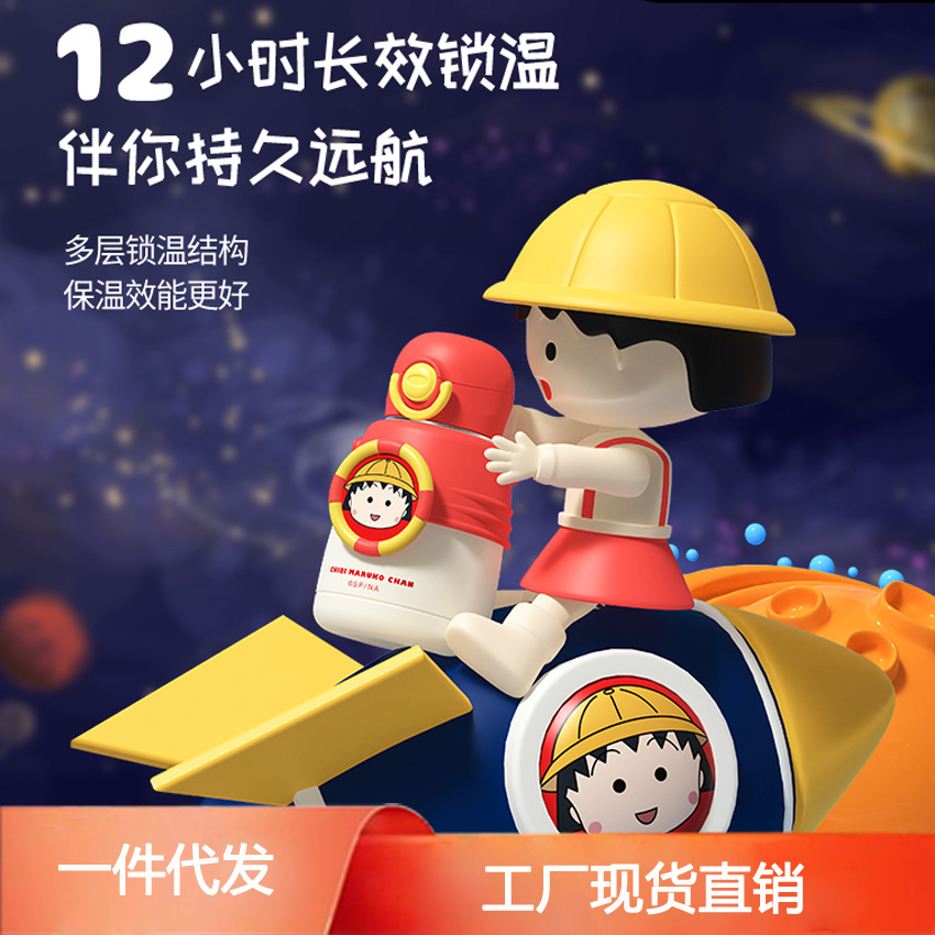 Gelas vakum kartun Cherry Maruko, cangkir isolasi 316 stainless steel, cangkir sedotan perut besar 600ml