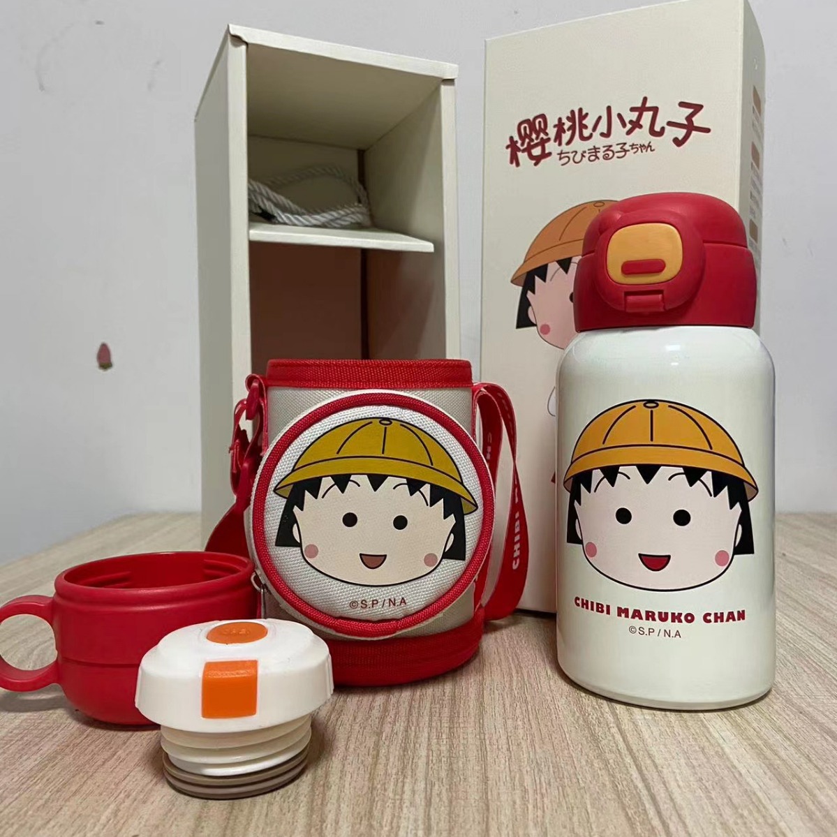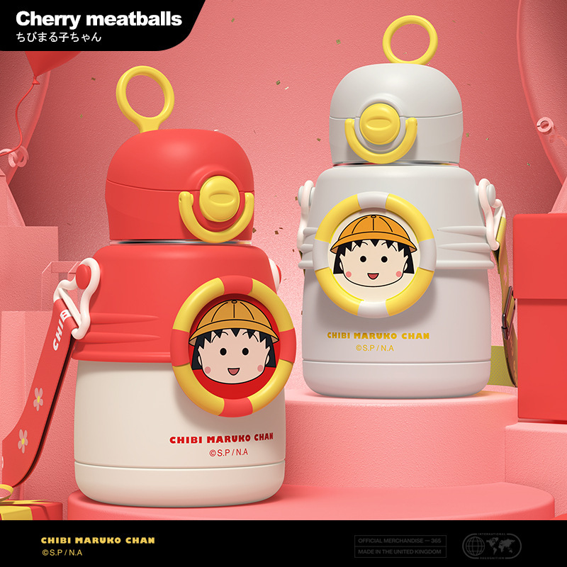 Cangkir vakum kartun Cherry Maruko 316, ketel baja tahan karat, cangkir sedotan portabel, hadiah cangkir air dengan kotak hadiah