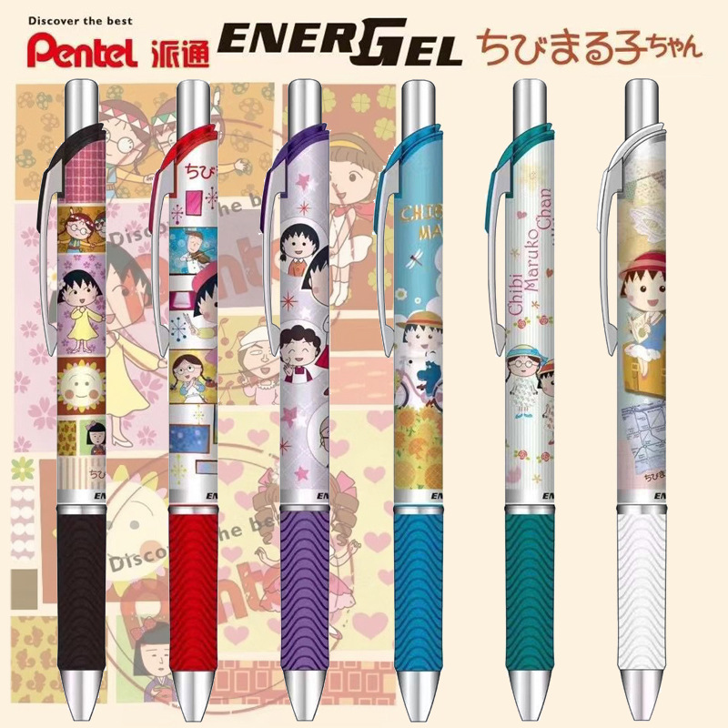 Jepang pente pitong BLN75 Cherry Maruko tipe terbatas tekan hitam cepat kering gel pena halus 0.5