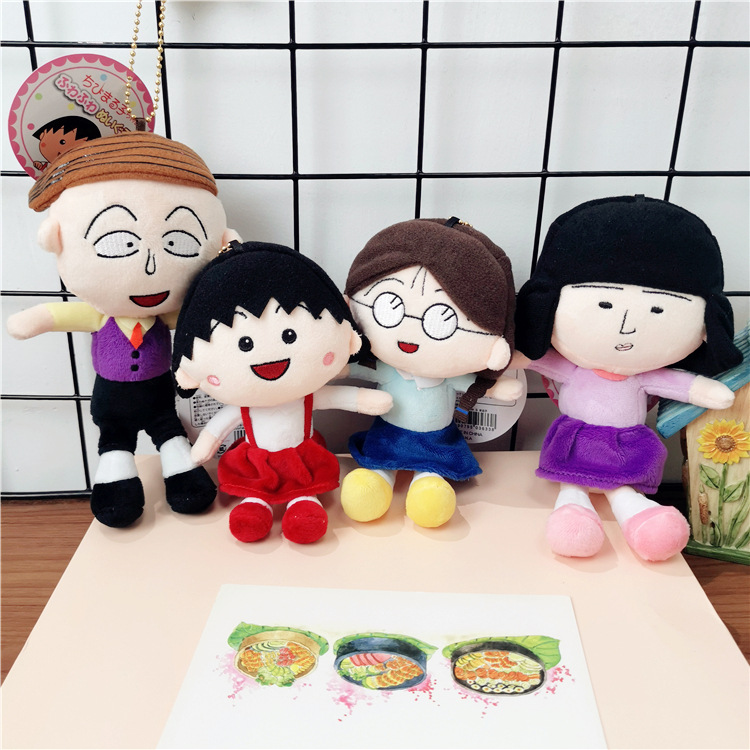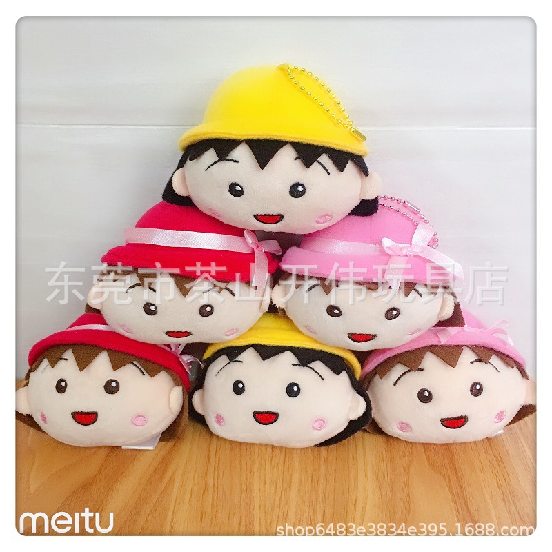 Aksesori tas boneka mewah liontin kecil berbentuk kepala lucu seri Maruko ceri Jepang