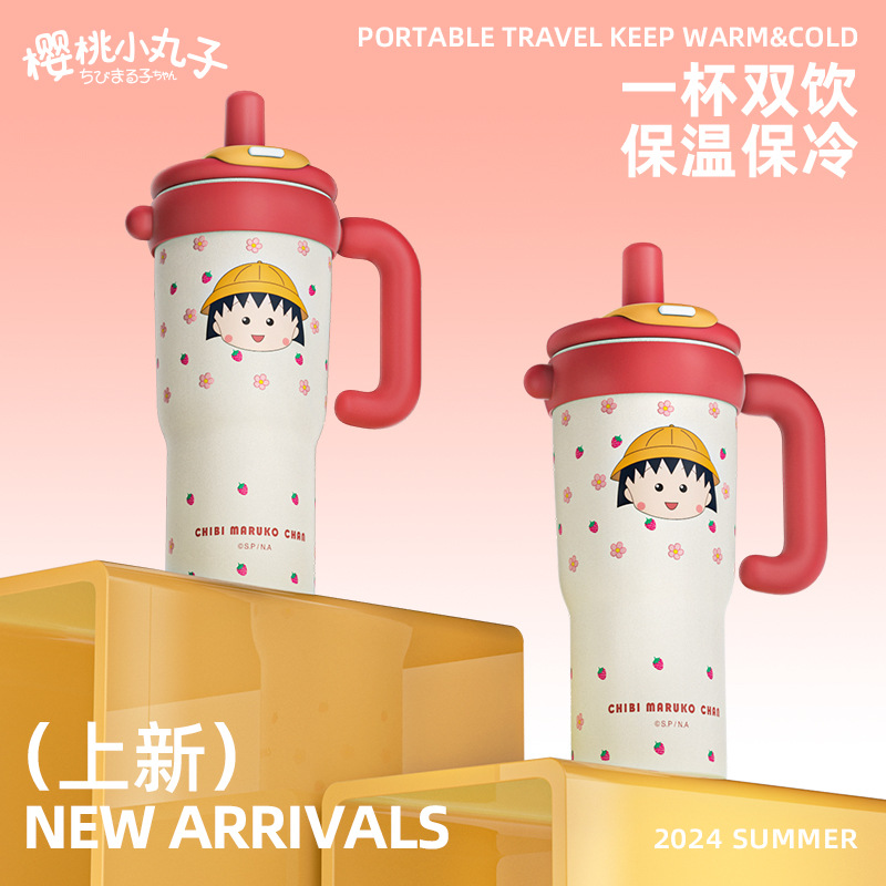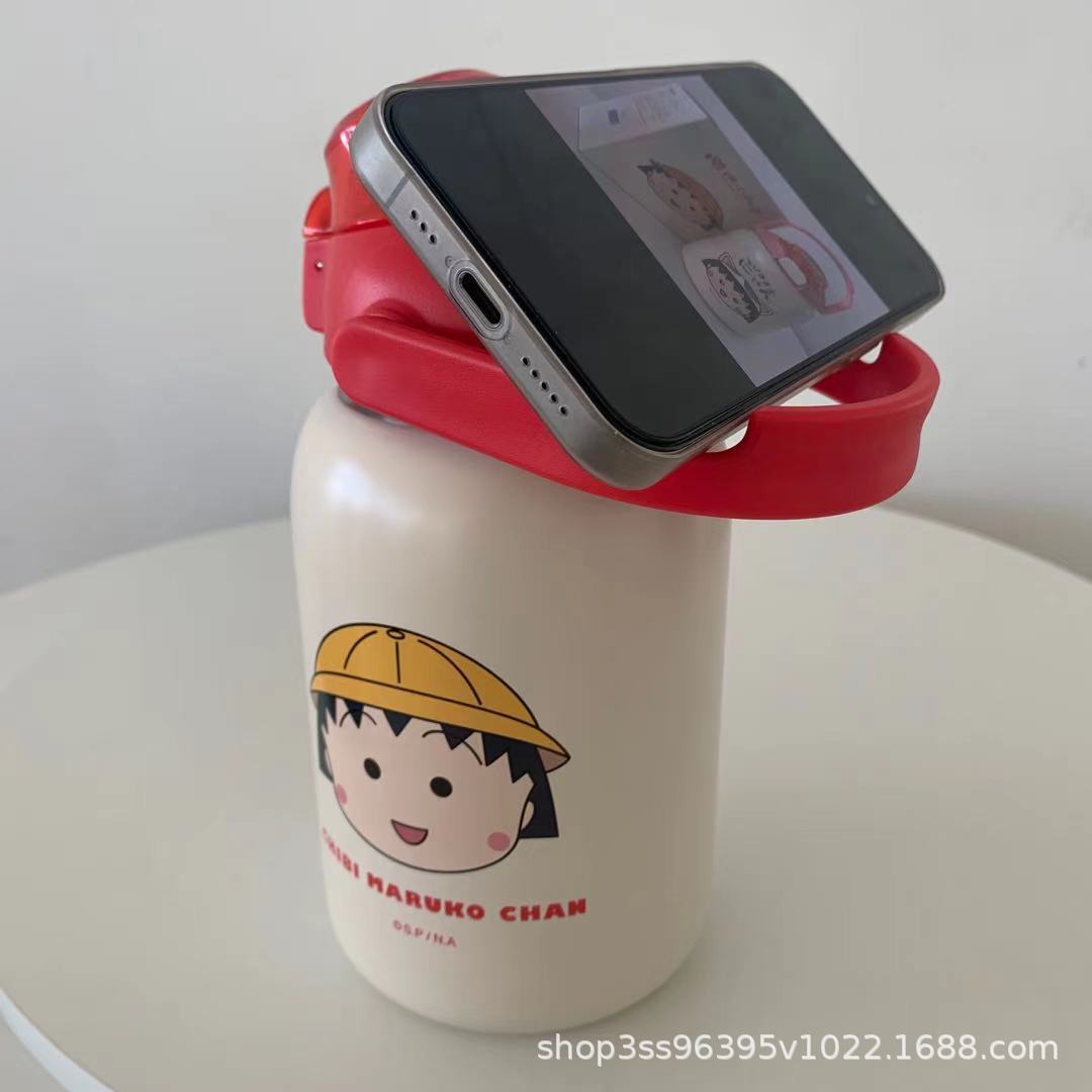 Cangkir vakum anak-anak, Cherry Maruko anak-anak, kartun, kapasitas besar, sedotan portabel, cangkir air lucu untuk siswa laki-laki dan perempuan