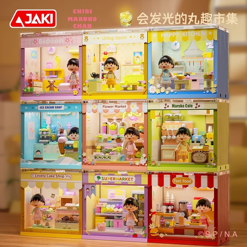 JAKI Jiaki Blok Bangunan Cherry Bakso Bola Kecil Pasar Fun Lampu Pemandangan Jalanan Rakitan Kotak Mainan Anak Perempuan Hadiah