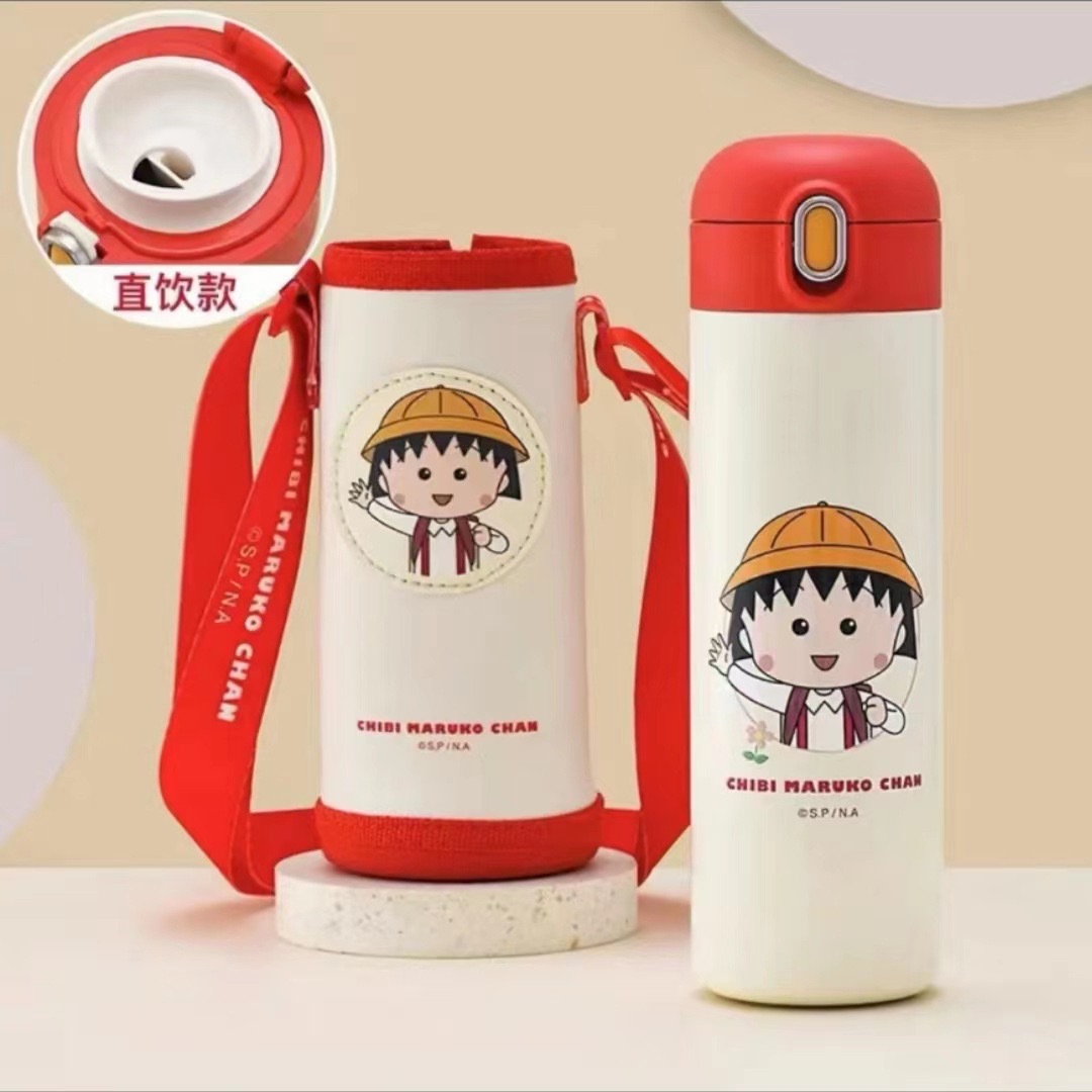 Cherry Maruko kartun asli termos anak-anak cangkir gadis sekolah khusus jerami taman kanak-kanak tutup ganda ketel besar