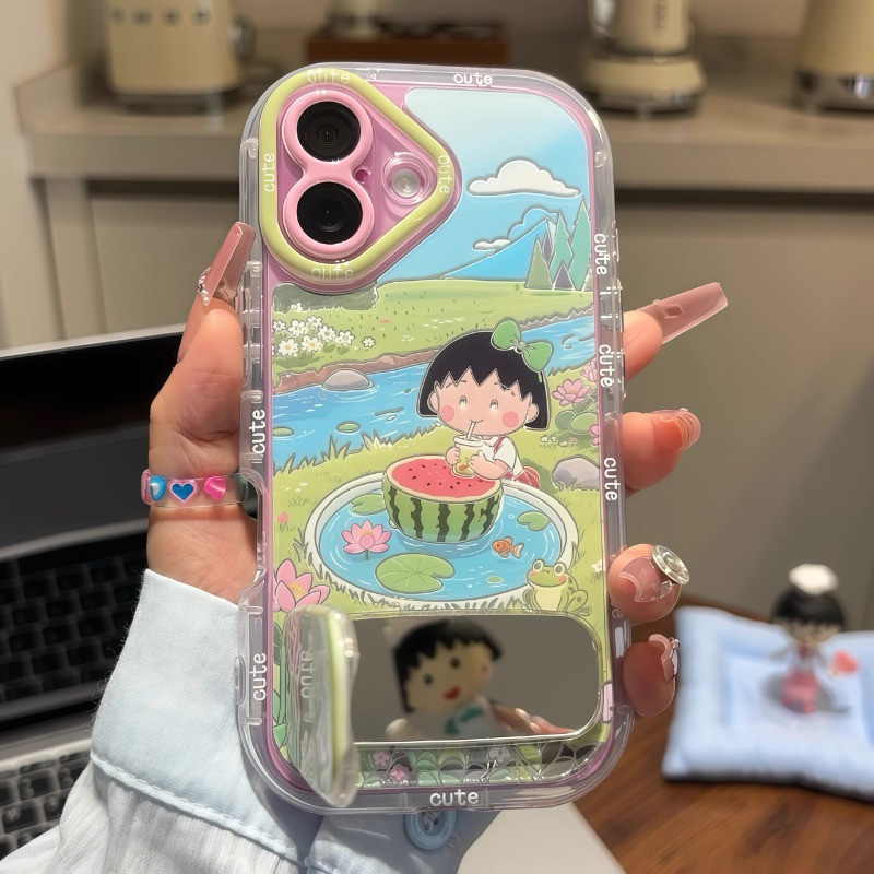 Cherry Maruko untuk Apple 15/14 casing ponsel iPhone13 all-inklusif 12/11/XR/xs tahan jatuh 7p