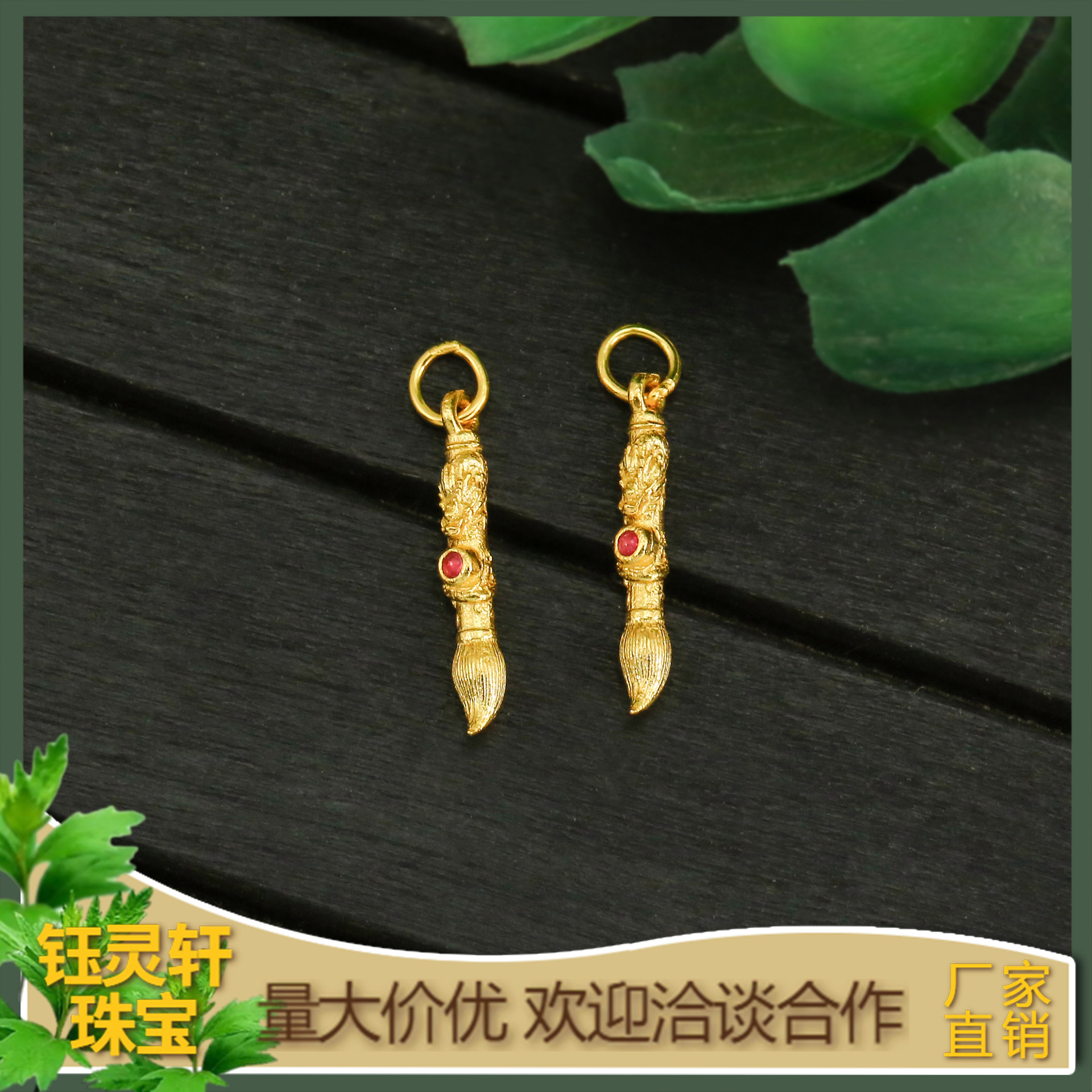 S925 perak emas berlapis bertatahkan merah giok naga pena drip aksesoris diy asli desain gelang kalung all-Match aksesoris