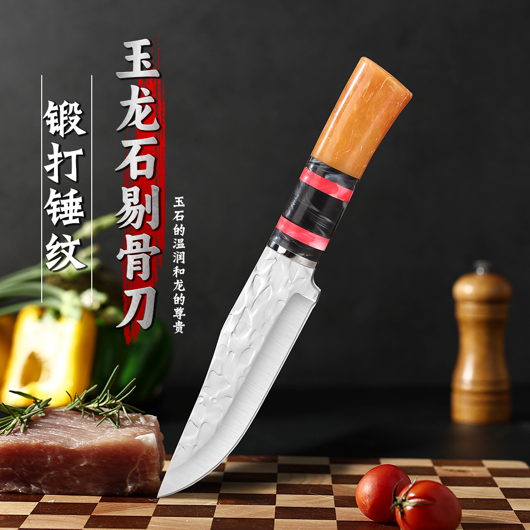 Nyaman untuk membawa pisau daging pisau pemotong tulang rumah tangga pisau makan daging luar ruangan pisau makan daging Mongolia pisau buah batu naga giok