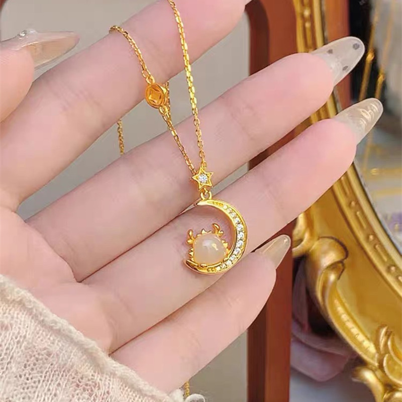 Kalung Naga Hetian jade wanita, Kalung liontin Naga Tahun Baru, desain niche mewah kelas tinggi