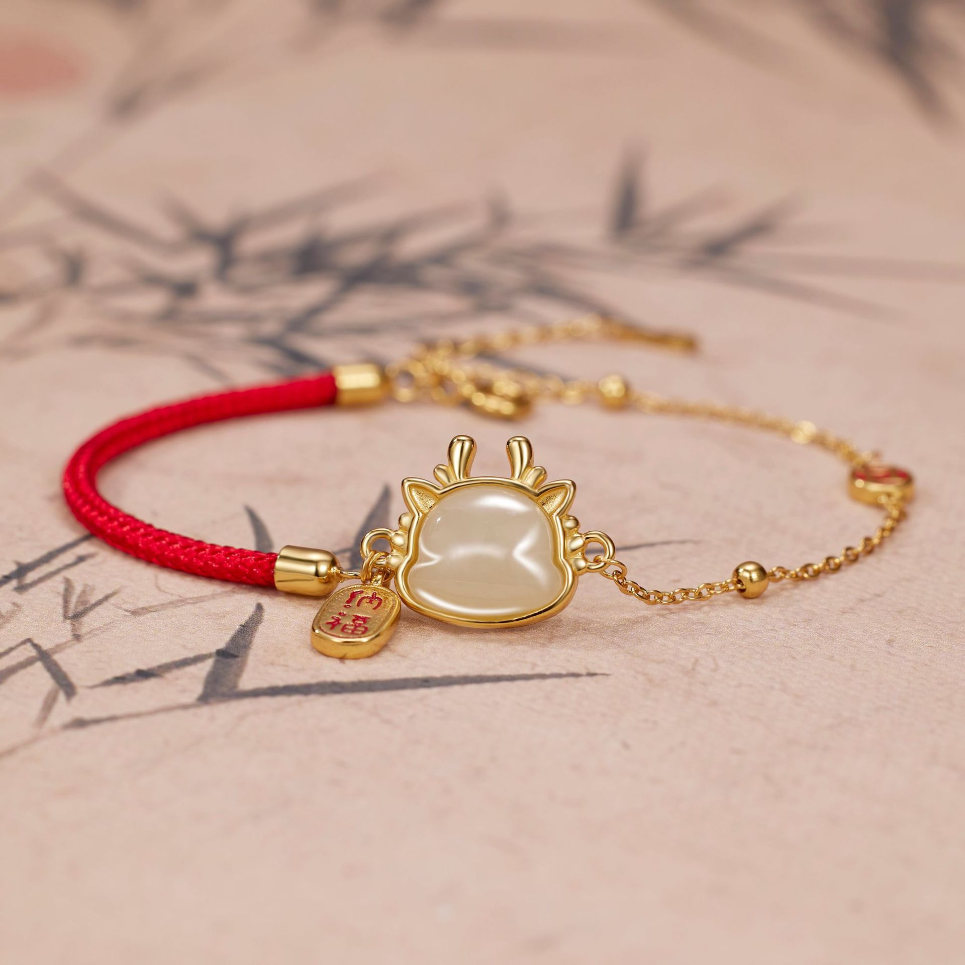 Gelang cinnabar untuk wanita tahun lahir naga, gelang giok Hetian naga lucu gaya Tiongkok baru untuk wanita 2024