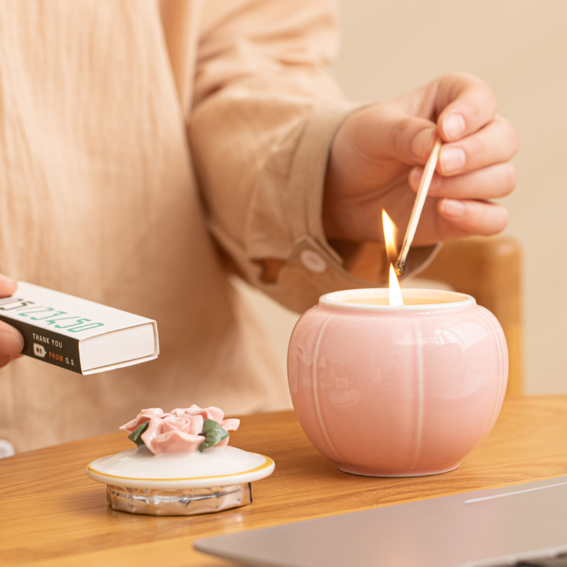 Grosir lilin aromaterapi cangkir keramik lintas batas pabrik lilin cendana lilin kedelai keramik Dekorasi cangkir parfum hadiah