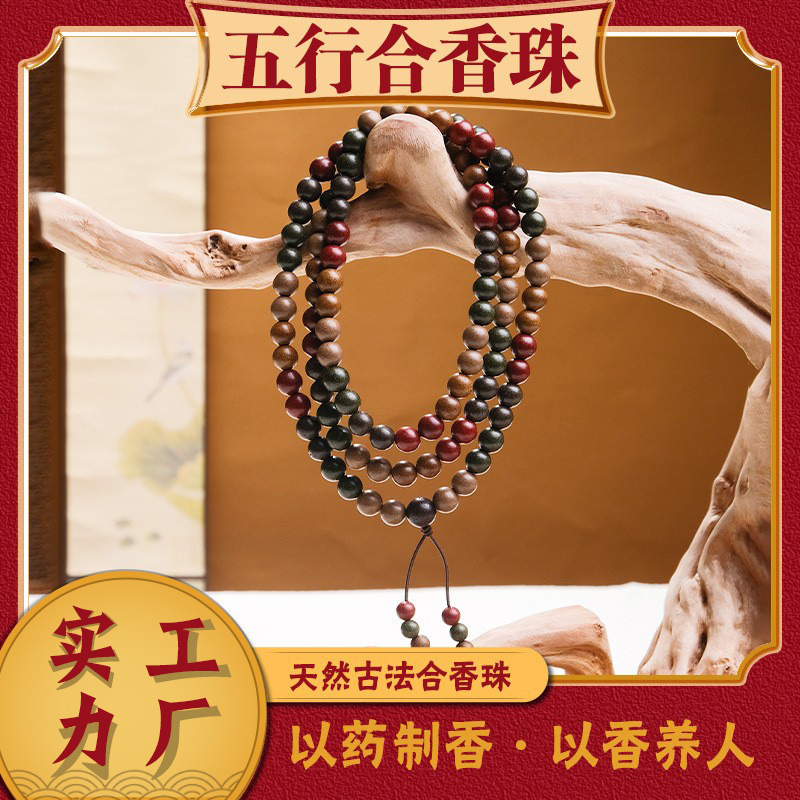 Pabrik grosir manik-manik kuno dan harum alami gelang lima garis gelang 108 manik-manik bulat kerajinan bukan warisan