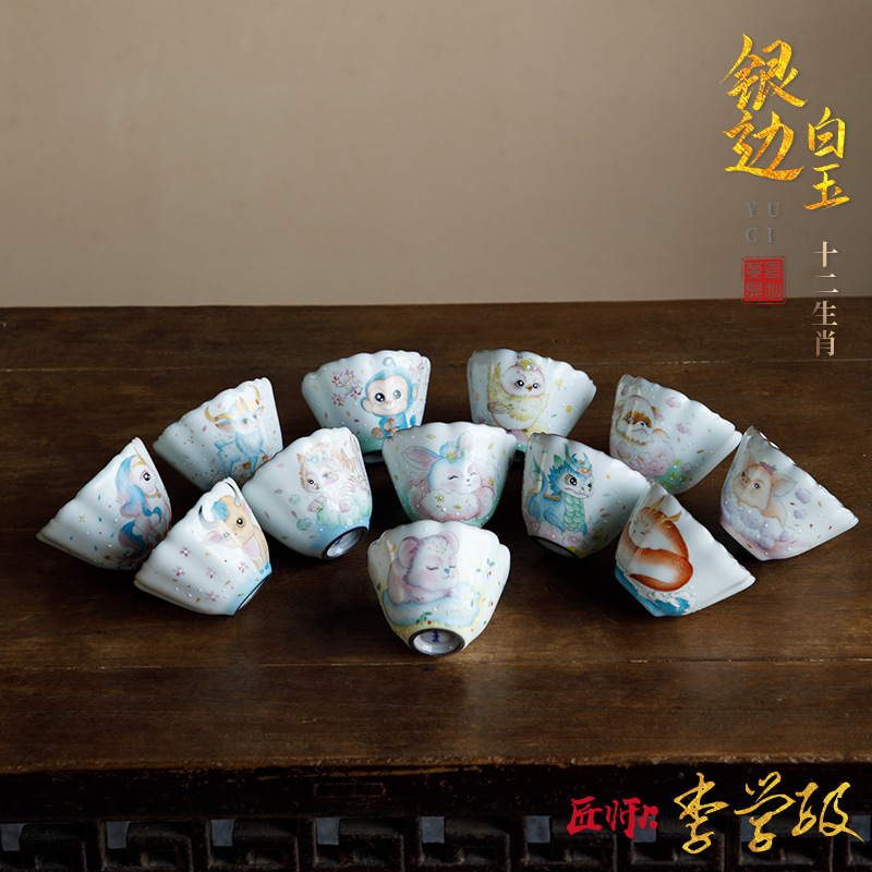 Cangkir zodiak dua belas tepi perak cangkir teh Kili Xue grade Ru kiln cangkir teh Master kualitas tinggi cangkir teh Kung Fu Ru cangkir teh porselen