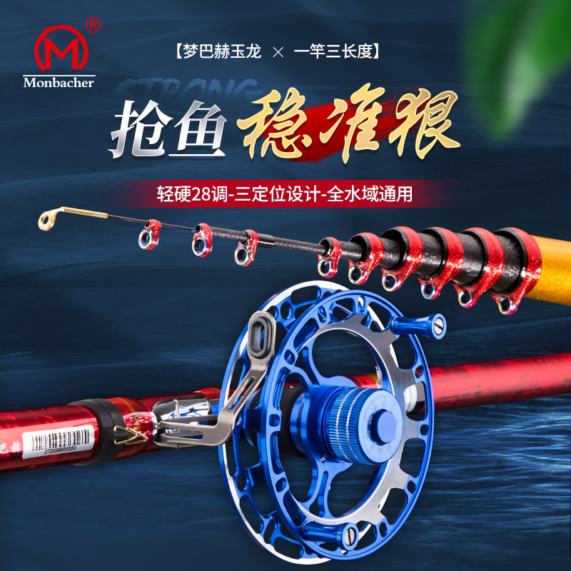 Tongkat pancing Mengbach gumai, Yulong, karbon ultra ringan, keras, 28 dapat disesuaikan, tiga posisi, set lengkap tongkat pancing depan aliran