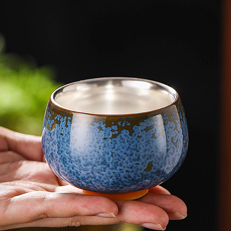 Cangkir teh giok biru elegan cangkir utama cangkir teh cangkir tunggal keramik besar kung fu murni perak gaya cina cangkir teh antik