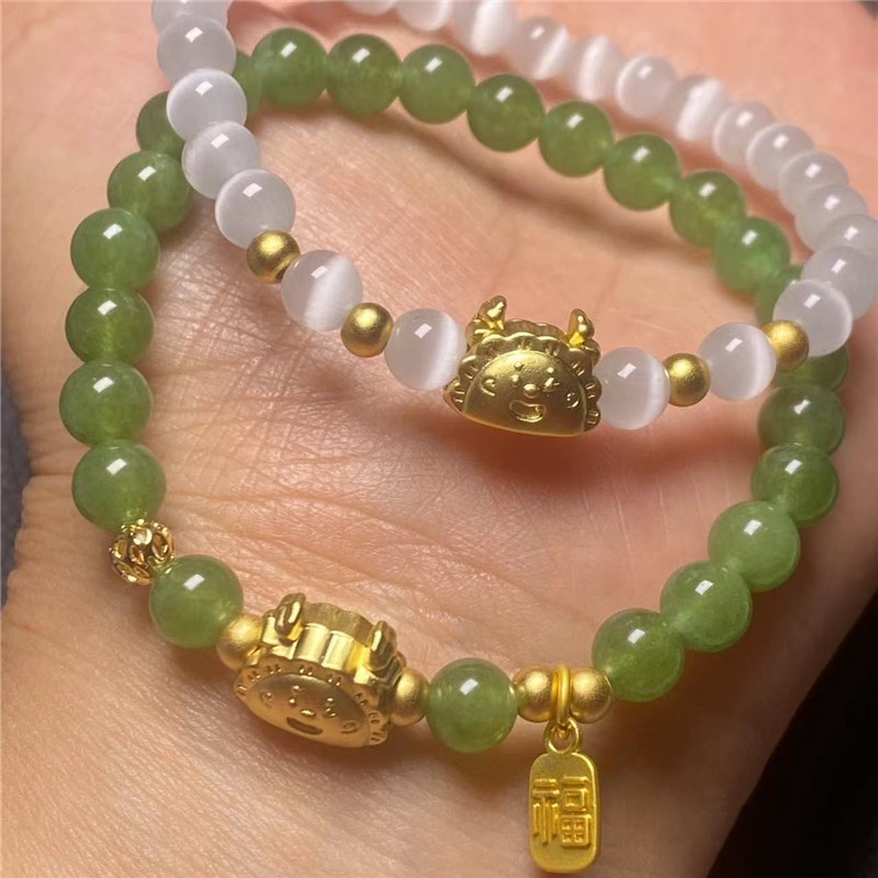 Gelang kulit pangsit naga mata kucing putih gelang merek keberuntungan kukus satu naga kalsedon giok Hetian hidup 2024