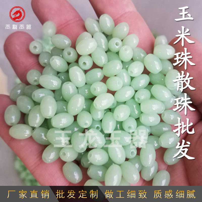 Manik-manik longgar grosir giok Hetian imitasi manik-manik nasi manik-manik longgar obsidian imitasi manik-manik longgar Dongling imitasi manik-manik oval manik giok imitasi