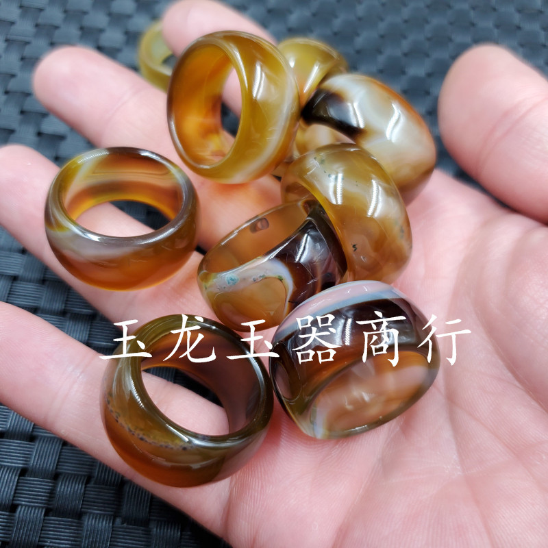 Giok naga giok Sutra batu akik cincin akik coklat cincin kalsedon cincin lebar