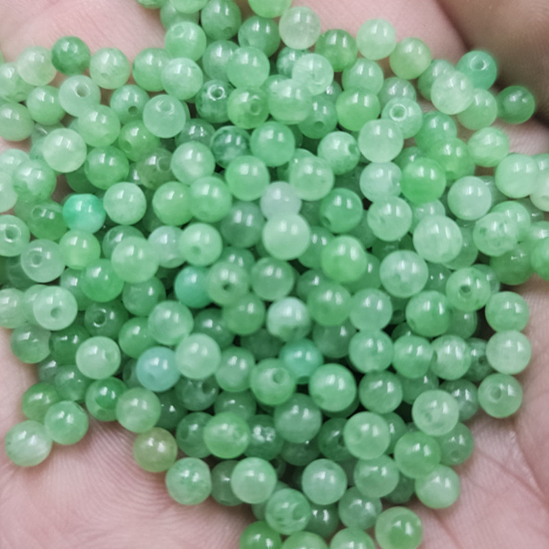 Zamrud giok putih latar belakang hijau bulat manik-manik giok longgar manik-manik hijau kacang 4mm manik-manik diy gelang kalung aksesoris perhiasan manik-manik