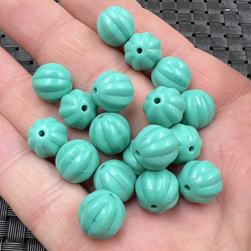 Perhiasan longgar manik imitasi biru pirus labu manik-manik longgar biru langit manik-manik labu longgar gelang kalung anyaman manik-manik longgar