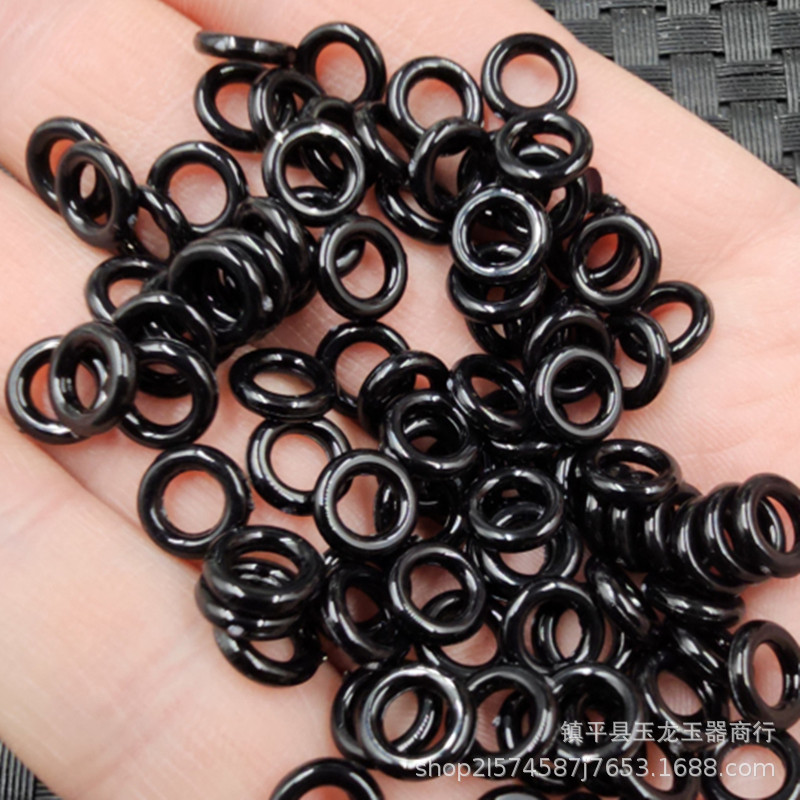 Cincin Lubang Besar Imitasi Obsidian Manik-manik Batu Giok Imitasi Manik Manik Batu Akik Hitam Gesper Cincin Isolasi Manik Manik-manik