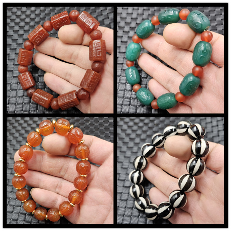 Gelang batu akik merah pola belakang manik-manik tua giok gelang bambu simpul labu manik Tautan jalan gelang kalsedon giok gelang