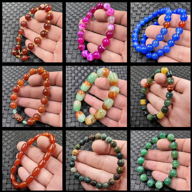 Gelang manik-manik bulat batu akik merah es gelang manik-manik barel kalsedon kuning gelang jalan batu akik bunga es hijau grosir