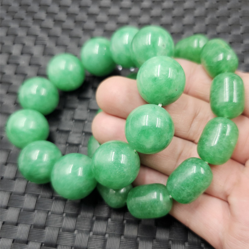 Gelang manik-manik bulat hijau giok kering 20mm, gelang Tautan jalan hijau latar belakang putih, gelang gaya sama untuk pria dan wanita