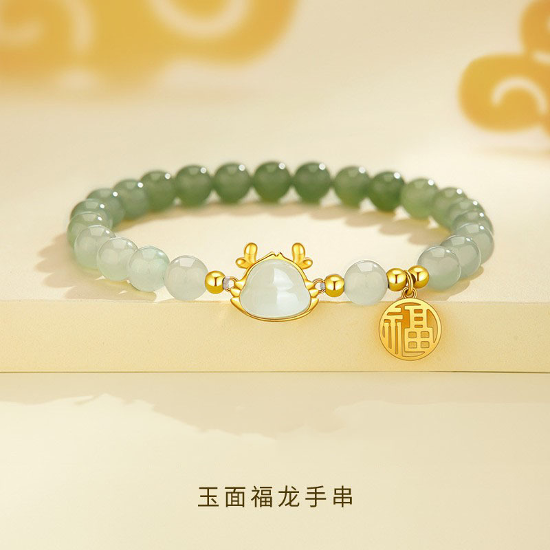 Gelang tahun lahir naga anak perempuan, gelang giok Hetian imitasi baru sederhana mewah ringan hadiah ulang tahun untuk pacar perempuan 2024