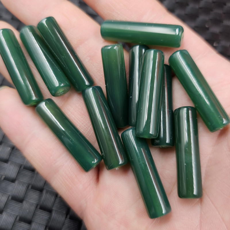 Ice green chalcedony gelang manik-manik, manik longgar giok hijau batu akik tabung lurus silinder kolom lurus gelang Aksesori Perhiasan