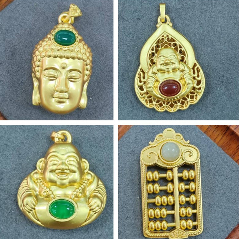Gaya Kuno Liontin Emas Kalsedon Pengikat Perdamaian Batu Akik Kepala Buddha Tembaga Putih Berlapis 925 Perak Artacus Kalung Giok