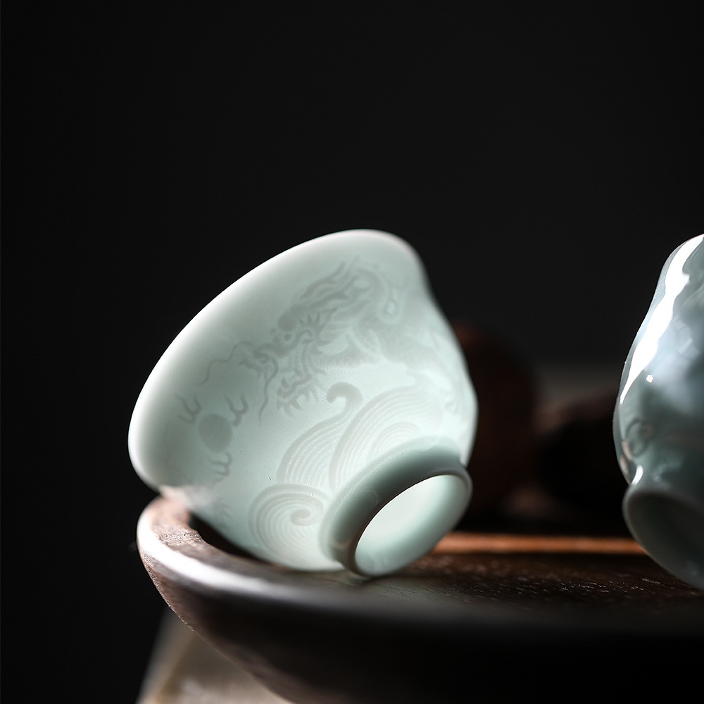 Jingdezhen cangkir teh keramik ukir tangan, cangkir teh kung fu celadon gelas utama warna hijau, cangkir teh tunggal