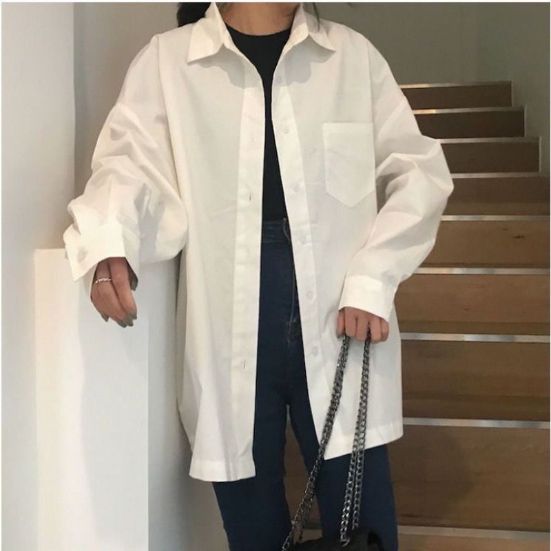 JK kaus seragam atasan putih untuk pelajar, kemeja seragam mode longgar kelas lengan panjang cocok untuk pasokan langsung dari pabrik