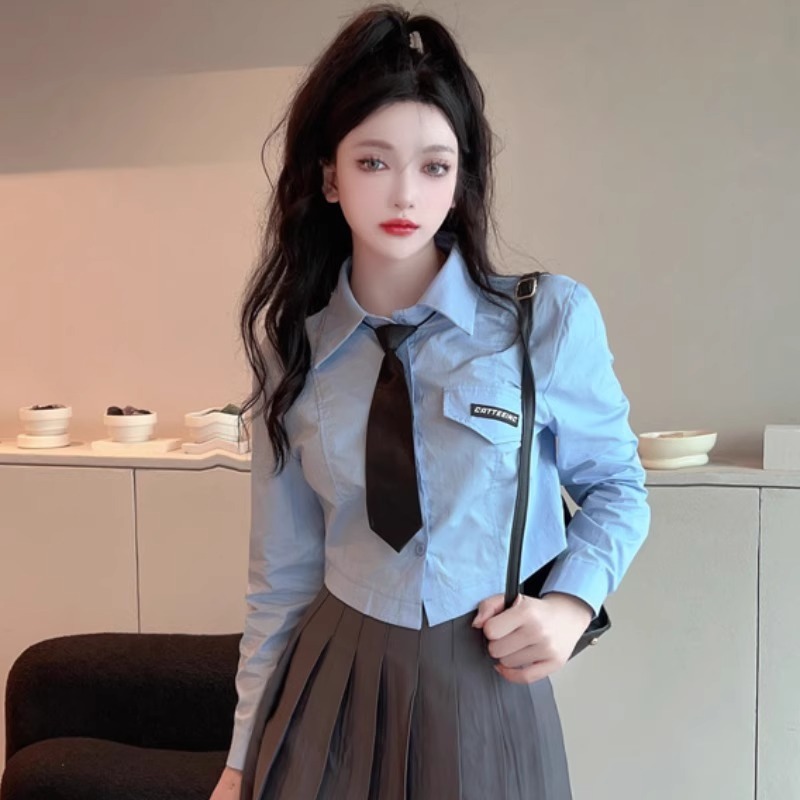 Dalam stok grosir 2024 kemeja lengan panjang putih wanita JK dasi di dalam pakaian luar Joker wanita baru