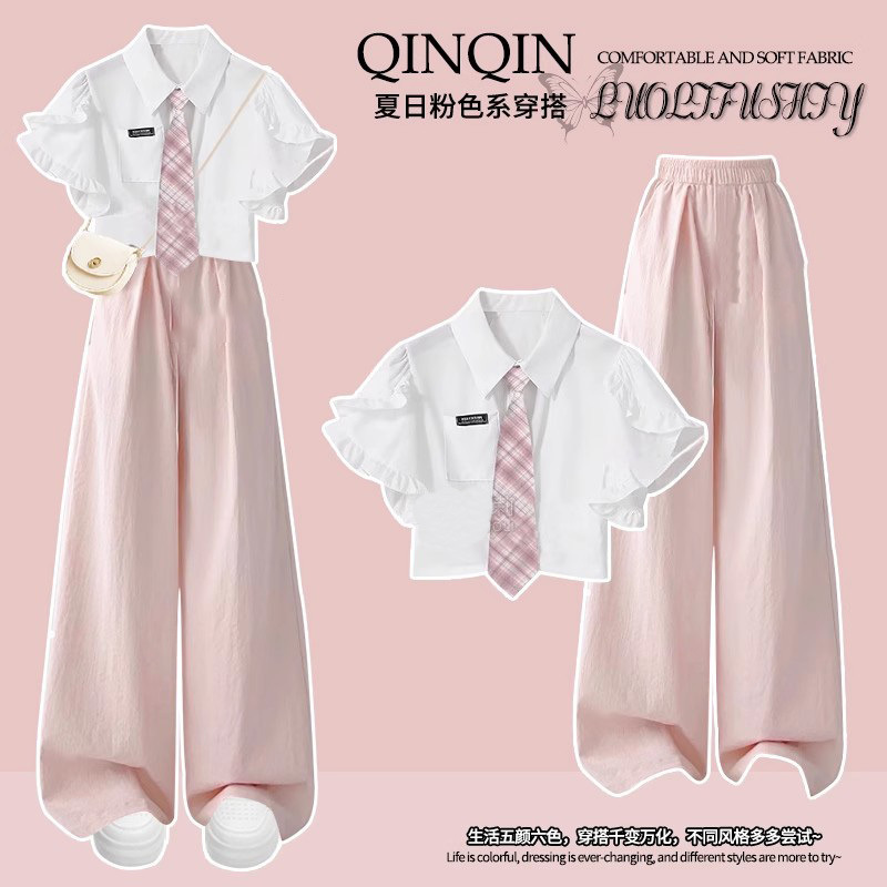 Setelan Musim Panas Siswa Perempuan Model Baru 2025 Celana Kulot Kemeja JK Pakaian Musim Panas Wanita Celana Gunung Setelan Dua Potong