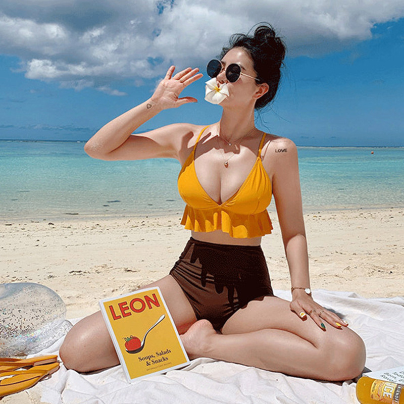 Baju renang dua potong baju renang wanita dada kecil bikini telinga kayu seksi musim semi panas gaya Jepang bikini
