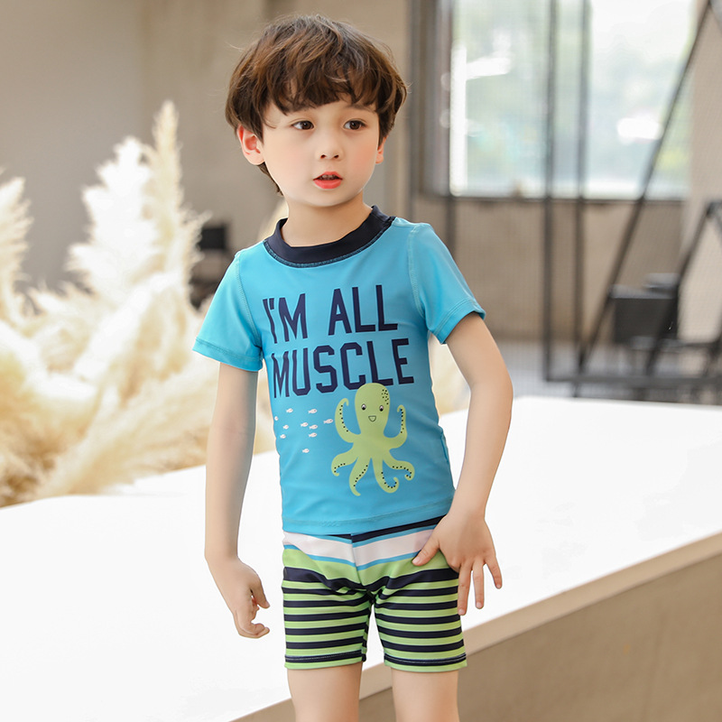 Pakaian renang anak laki-laki, tiga potong setelan pakaian renang anak-anak gurita anak-anak
