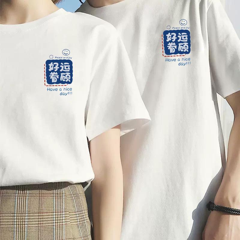 Kaus lengan pendek leher bulat wanita, kaos minimalis bercetak netral warna putih untuk pria dan wanita musim panas