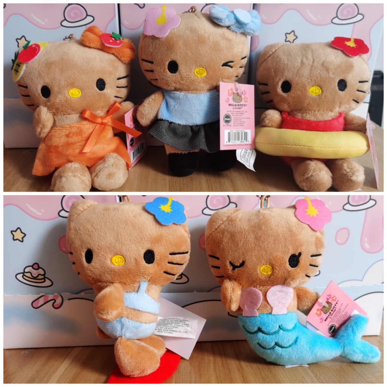 Imut Jepang Sanrio Ulang Tahun ke-50 Hawaii Kulit Hitam Kitty Liontin Skateboard Boneka Putri Duyung