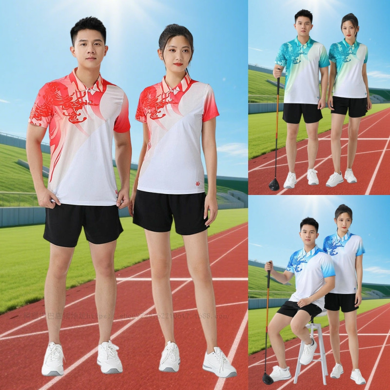Pakaian Badminton setelan penyerapan kelembaban baru kerah pakaian kebugaran pria dan wanita musim semi dan musim panas atasan setengah lengan pakaian tenis meja celana pendek