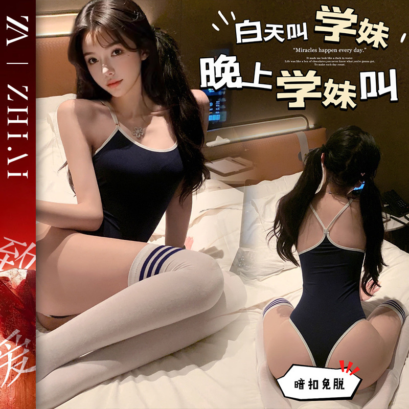 Lingerie seksi yang menawan, jumpsuit sutra es berkilau, pakaian dalam traksi siswa Jepang, air mati wanita, yuan sekunder terbuka