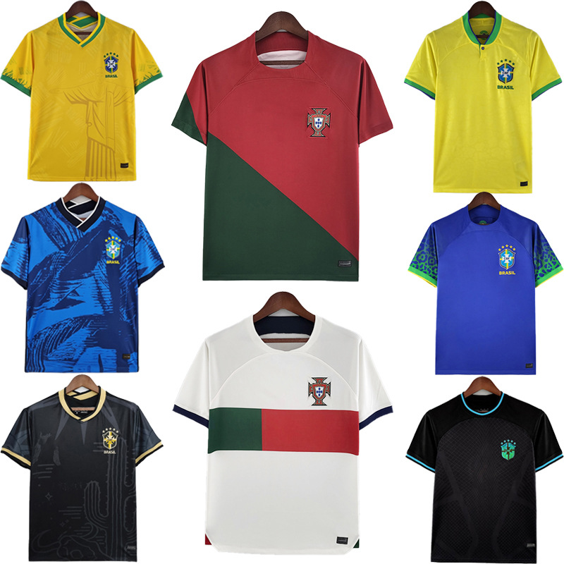 Set Pakaian Sepak Bola Piala Dunia 2022 Brasil Pakaian Tim Pelatihan Pertandingan Pria dan Wanita Pakaian Olahraga Kasual Lengan Pendek
