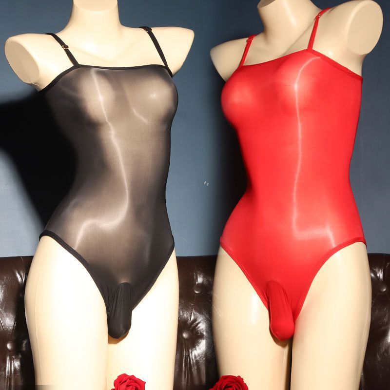 Jumpsuit selempang gaya Jepang rompi Selangkangan mulus halus mengkilap pakaian renang tembus pandang stoking tembus pandang