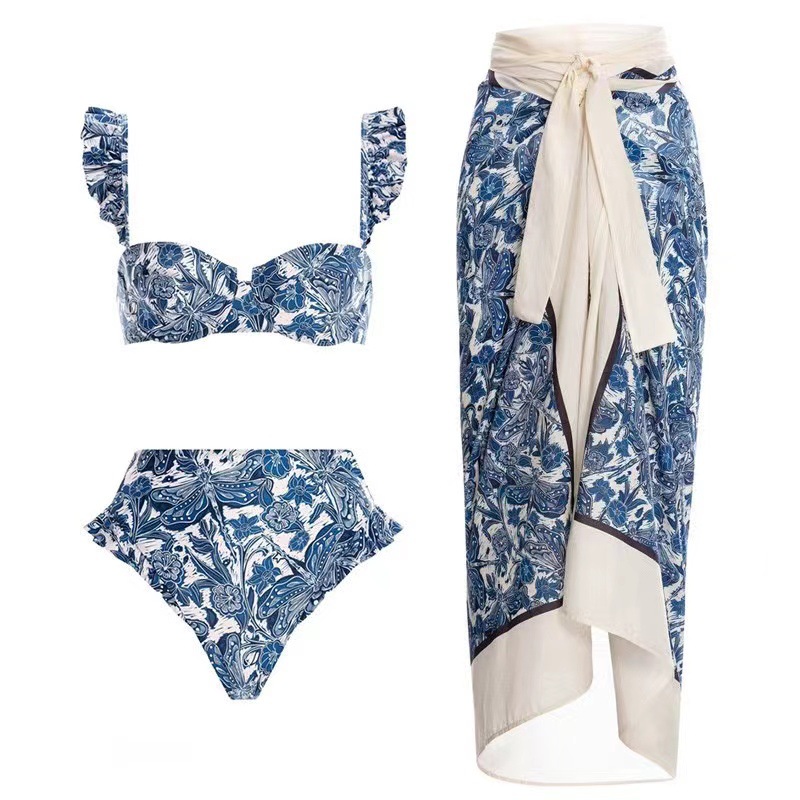Pakaian renang desainer bikini lukisan tinta merek mode baru pakaian renang tali serut wanita kerudung pakaian tiga potong